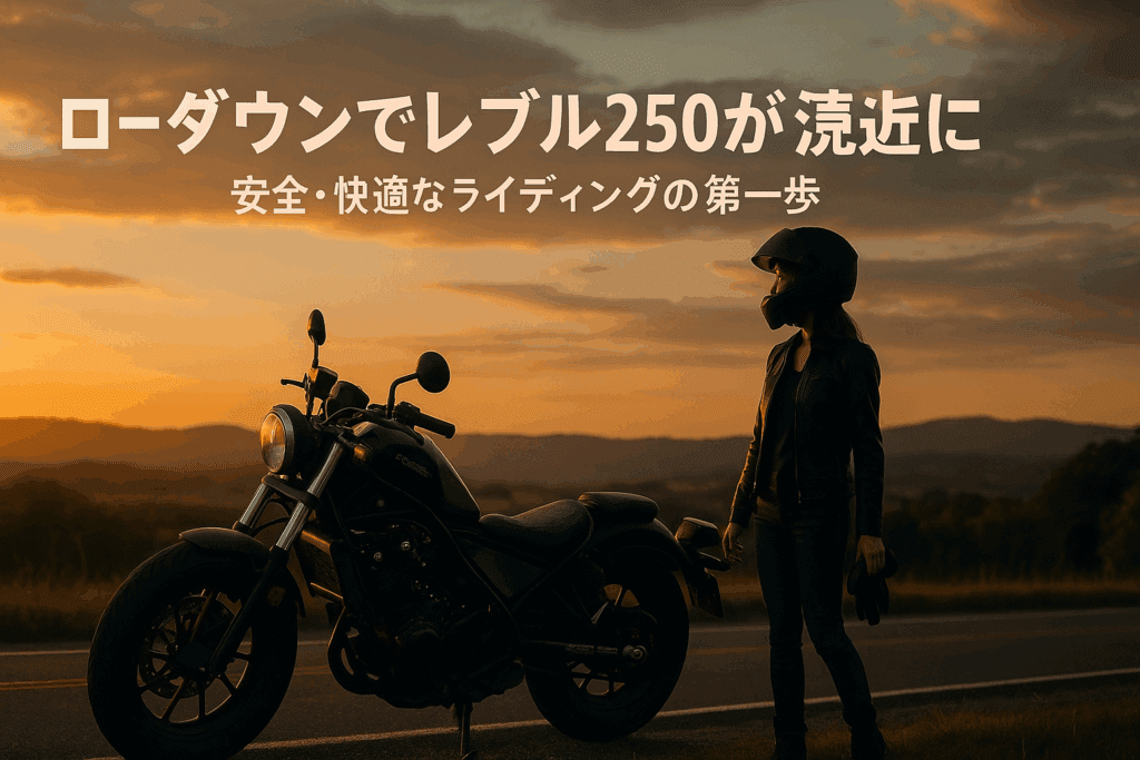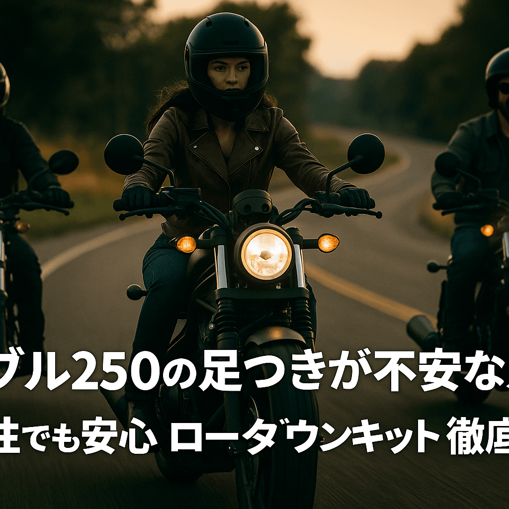 「足が地面に届かないのが怖くてバイクに乗るのをためらっている…」そんな悩みを持つライダーは、実は少なくありません。特に女性や小柄な方に人気のある「レブル250」でも、足つき性に不安を抱く声は多数。この記事では、初心者〜中級者ライダーが安心してカスタムに踏み出せるよう、ローダウンキットの効果・選び方・DIY方法・実走レビューまで徹底解説します。この記事を読み終えたあなたは、レブル250が「もっと身近で、もっと楽しい相棒」に変わるはずです。